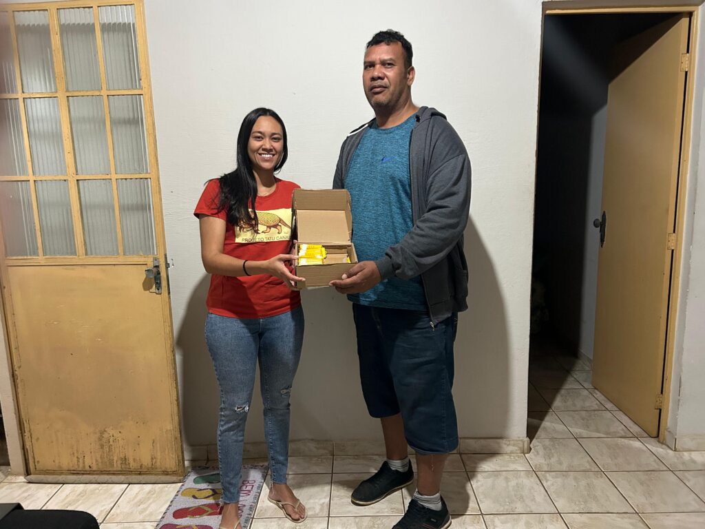 Hoje, tem dez caixas no apiário, mas já teve o triplo desse número: o culpado pela drástica redução de colmeias foi o tatu-canastra, que chegou a destruir vinte e cinco colmeias em uma única ocasião. O tatu, um insetívoro obrigatório, depende do cerrado para sobreviver, e o assentamento está cercado por monoculturas, o que faz que apicultores e canastra sejam obrigados a dividir as mesmas áreas. Dessa forma, acontecem os acidentes – e os prejuízos. Hudson conta que ele e os vizinhos já perderam muitas colmeias para o maior tatu do mundo, e no início havia muito ressentimento, tanto contra o canastra quanto contra o tamanduá-bandeira, que por vezes passava nos apiários depois que o tatu já havia quebrado as caixas. Os cavaletes vieram para mudar tudo isso: altas e bem amarradas, as caixas estão agora fora do alcance do canastra, e as perdas não são mais tão frequentes.
