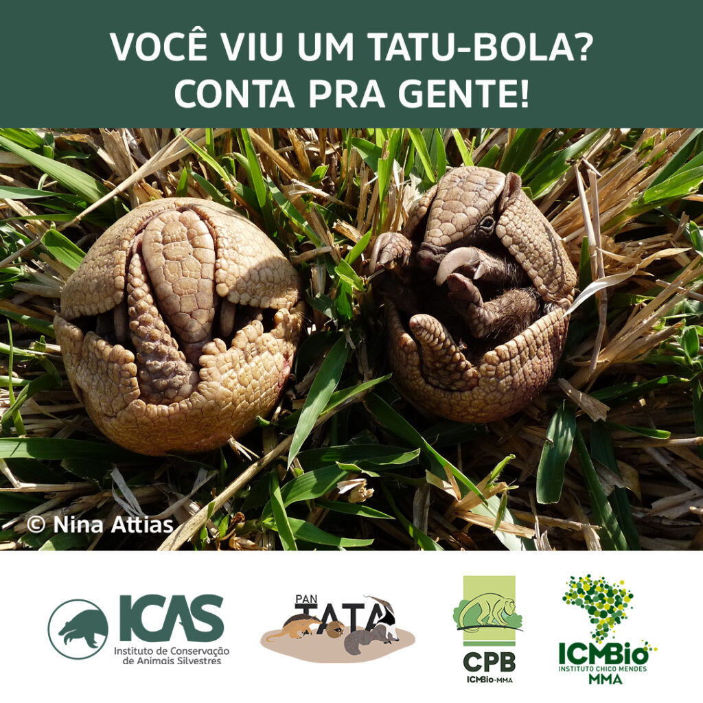 O Instituto de Conservação de Animais Silvestres (ICAS) lançou nesta quarta-feira (11) um questionário nacional para registrar ocorrências e ausências do tatu-bola (Tolypeutes matacus) no Brasil. A iniciativa tem como objetivo atualizar o mapa de distribuição da espécie no país e gerar informações essenciais para subsidiar o Plano de Ação Nacional para a Conservação do Tamanduá-bandeira, Tatu-canastra e Tatu-bola, que será coordenado pelo ICMBio (Instituto Chico Mendes de Conservação da Biodiversidade) em maio de 2026.