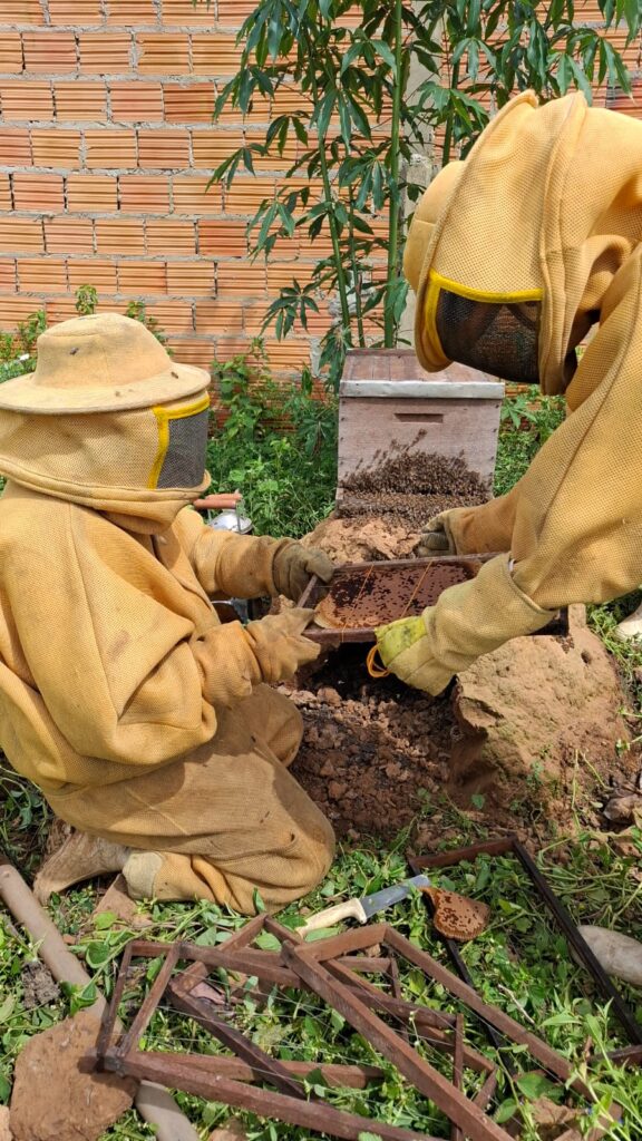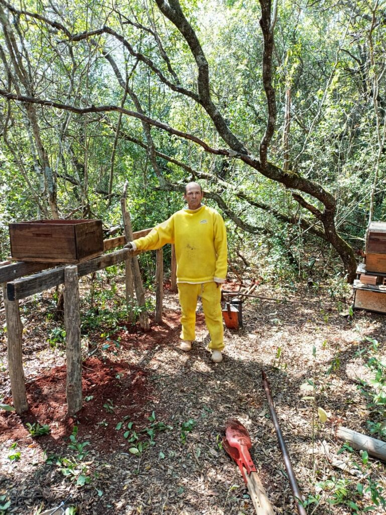 Uma história de parceria e evolução através da apicultura: Nilson e sua esposa Jocimar Guilherme da Silva são um casal que está sempre trabalhando junto, especialmente quando falamos da apicultura: em 2023, eles vão completar dois anos trabalhando com as abelhas, um trabalho do qual têm orgulho: um trabalho do qual têm orgulho: “As pessoas só entendem você quando elas ouvem você explicar a importância das abelhas e do seu trabalho, o trabalhão que dá” Jocimar conta.